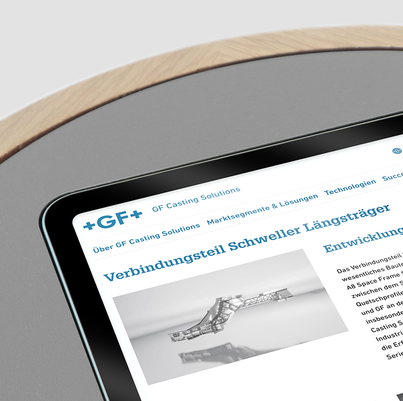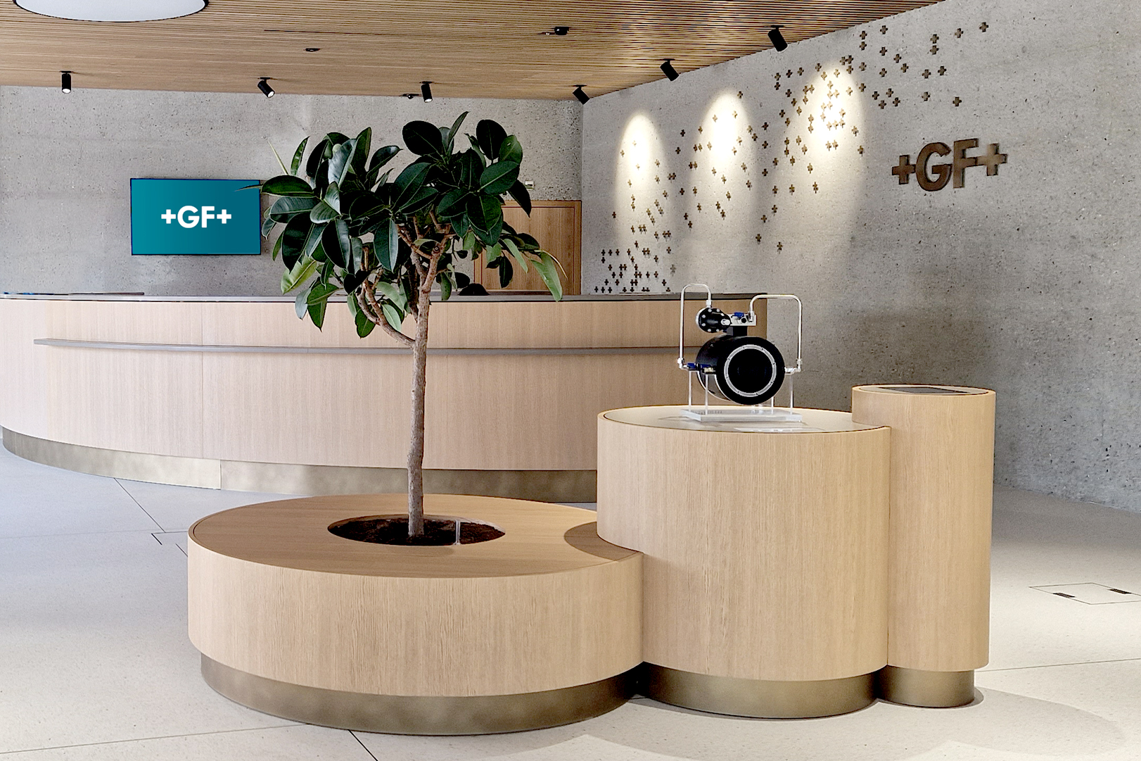 Im Rahmen der Renovierung des Hauptsitzes in Schaffhausen beauftragte Georg Fischer uns mit der Gestaltung und Entwicklung der Produktinszenierung für die drei Hauptgeschäftsbereiche GF Piping Systems, GF Casting Solutions und GF Machining Solutions.