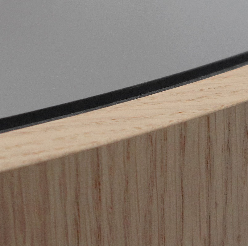 Die Designästhetik verfolgt einen einfachen und modernen Ansatz. Glatte Eichenvertäfelungen wechseln sich mit den neutralgrau lackierten Präsentationsflächen ab. In diesen befinden sich präzisionsgefräste Aussparungen mit Informationstafeln und Platz für Touchscreen-Schnittstellen, für die digitale Produktpräsentation.