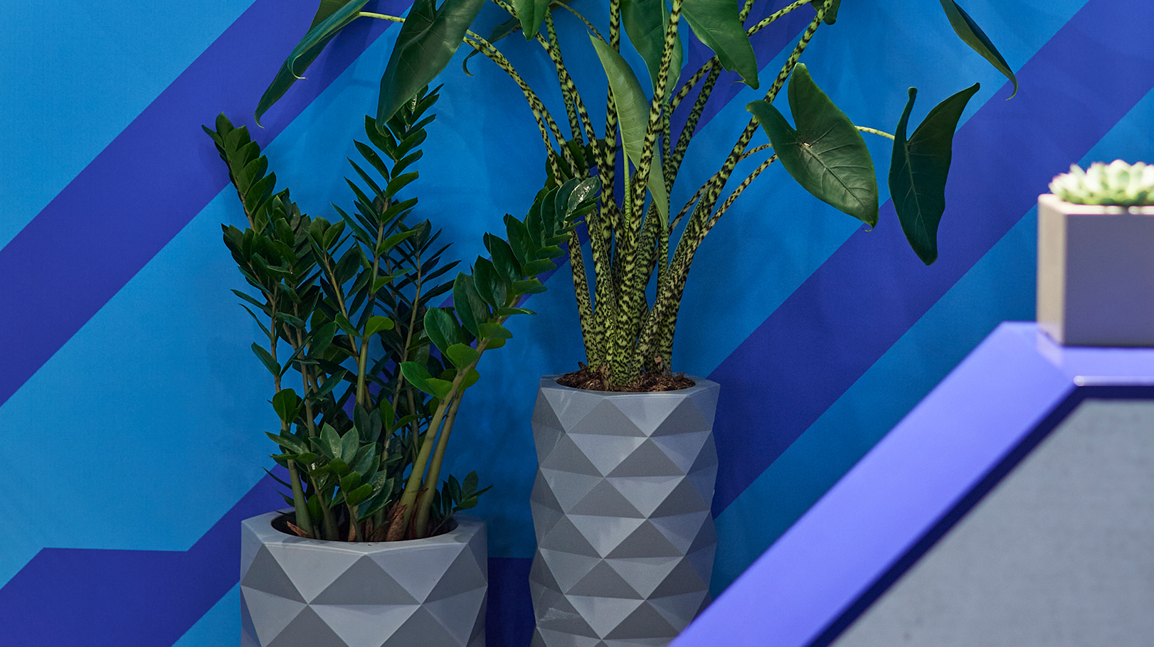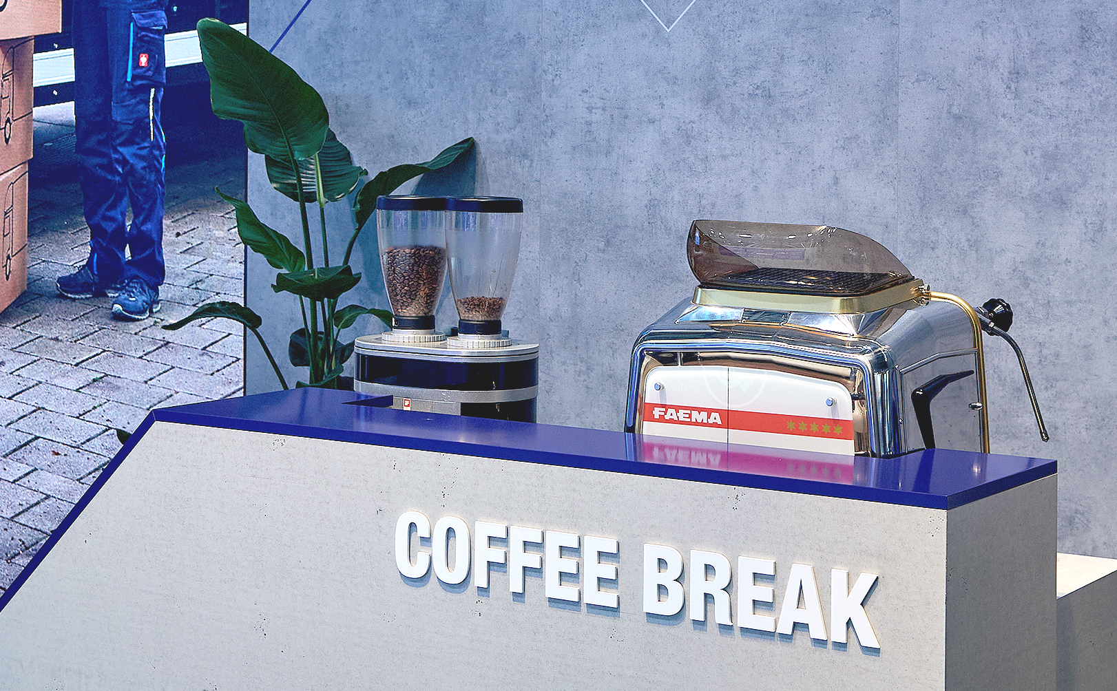 The first two exhibitions to share the furniture were IAA and BAUMA respectively. Here was the first test, the event space at BAUMA was significantly more compact than the IAA space. The Information desk and coffee area were split and rotated, with the standing desk and low seating similarly separated and reconfigured. With success at both events, the client was reassured that the furniture concept could be easily used for further events over the coming years.