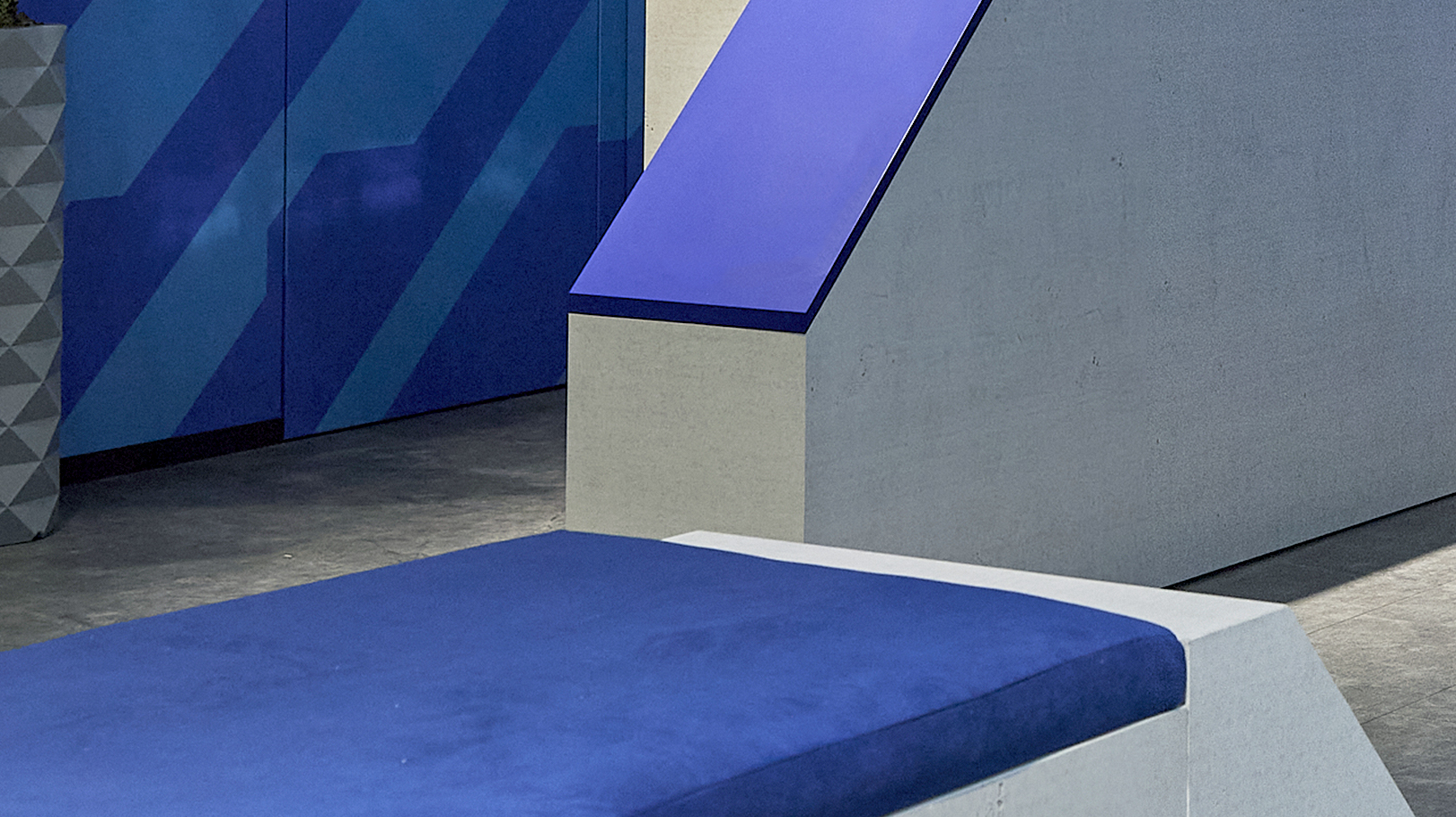 Wir entwickelten das modulare System auf der Grundlage der Bedürfnisse des Kunden für mehrere Ausstellungen und mit Blick auf künftige Veranstaltungen in den kommenden Jahren. Das bedeutete, dass jeder Teil des Stehelemente und der Sitzeinheiten, der Informationstheke und der Kaffeebar rekonfigurierbar sein musste, um in die potenziell unterschiedlichen Räume zu passen. Wir integrierten auch abschließbare Stauräume, Medien-/Technikfunktionen und Steckdosen. Unter berücksichtigung der Brand Guidelines wurde die Marke FUSO in das Design der Möbel integriert. Der 45-Grad-Winkel wurde eingebaut, um ein kühnes und dynamisches Aussehen aller Teile zu schaffen.
