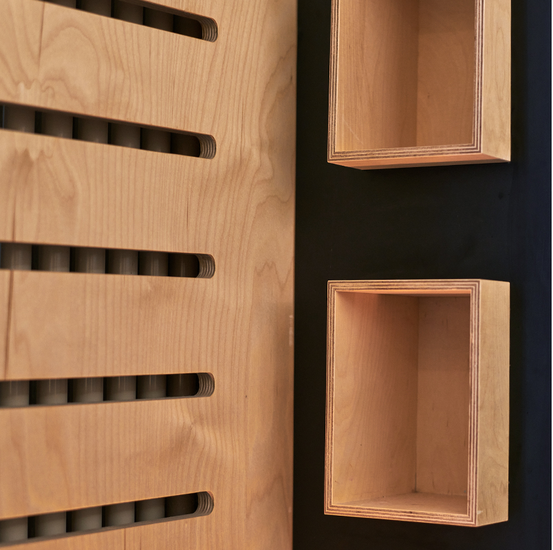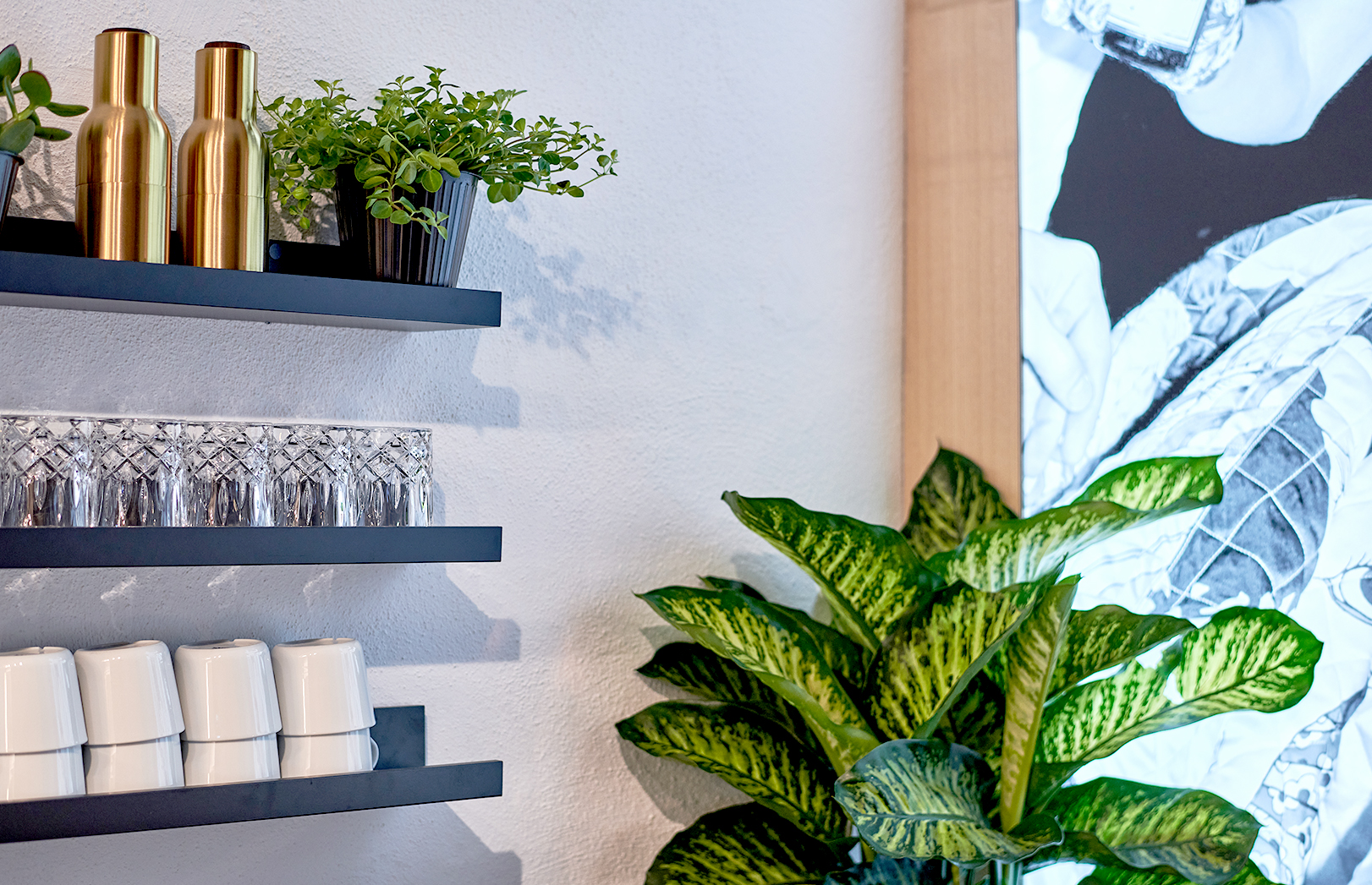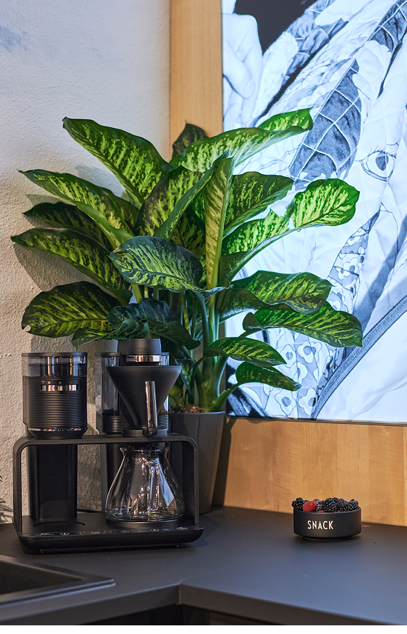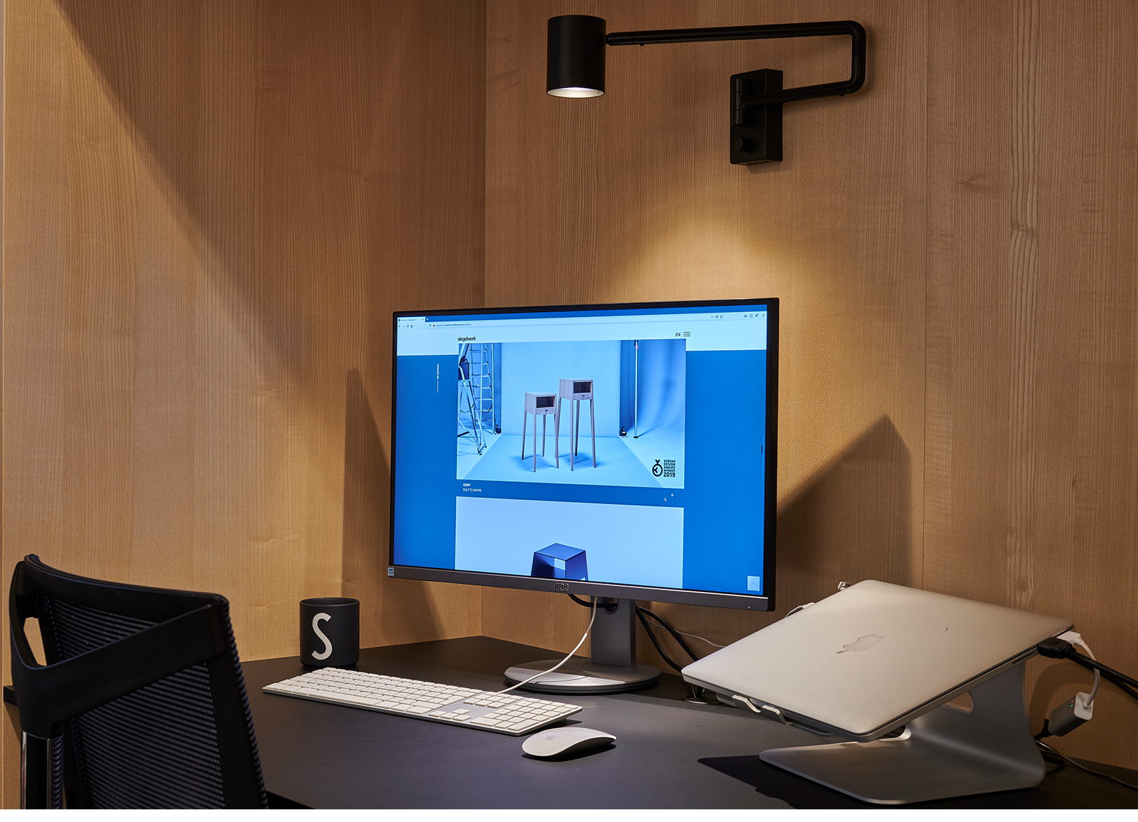 Einer unserer Hauptwerte als Designagentur: Wir sind herzlich und aufgeschlossen, erledigen unsere Arbeit aber auch professionell und kreativ. Natürlich sollte unser eigenes Studio dies widerspiegeln. Wir haben warme Naturholztöne gewählt und diese mit eleganten mattschwarzen Lackoberflächen ausgeglichen.